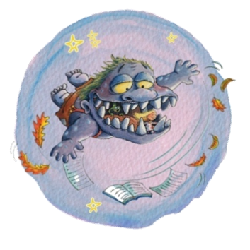 (..) mit dem MutMachMonster wird das Lesen zum MEGA Abenteuer! Gefördert durch die Stiftung Kunst, Kultur und Soziales der Sparda-Bank West & den Kobalat-Verlag.